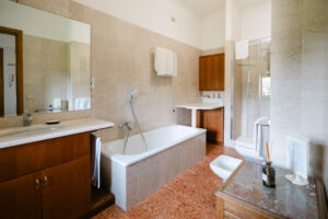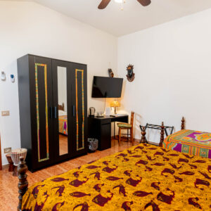 L’arredamento delle nostre camere spazia dallo stile classico a quello moderno, offrendo una gamma di opzioni per soddisfare ogni preferenza. Ogni camera è dotata di Smart-TV, consentendo l’accesso al tuo account Netflix personale. La camera è dotata inoltre di wi-fi. L’aria condizionata e la ventola garantiscono un ambiente sempre confortevole, mentre il bollitore per tè/tisane, l’armadio e la scrivania aggiungono praticità. Le camere vantano bagni privati con doccia, alcuni con l’aggiunta di vasca, arricchiti da tratti espressivi di pittori italiani e francesi. I pavimenti in marmo Rosso Verona conferiscono un tocco di eleganza.
