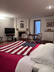 La nostra Suite King è una stanza ampia di 40 mq, completa di balcone privato. Dotata di un lussuoso letto matrimoniale e un comodo divano-letto matrimoniale, questa suite offre il massimo comfort. La camera è inoltre dotata di aria condizionata, wi-fi, bollitore per the/tisane e TV-smart. Il bagno in camera presenta una doccia walk-in e una rilassante vasca idromassaggio Jacuzzi. Con arredi eleganti e dettagli curati, la Suite King è la scelta ideale per un week-end romantico o una piacevole permanenza in Valpolicella con la famiglia o gli amici.